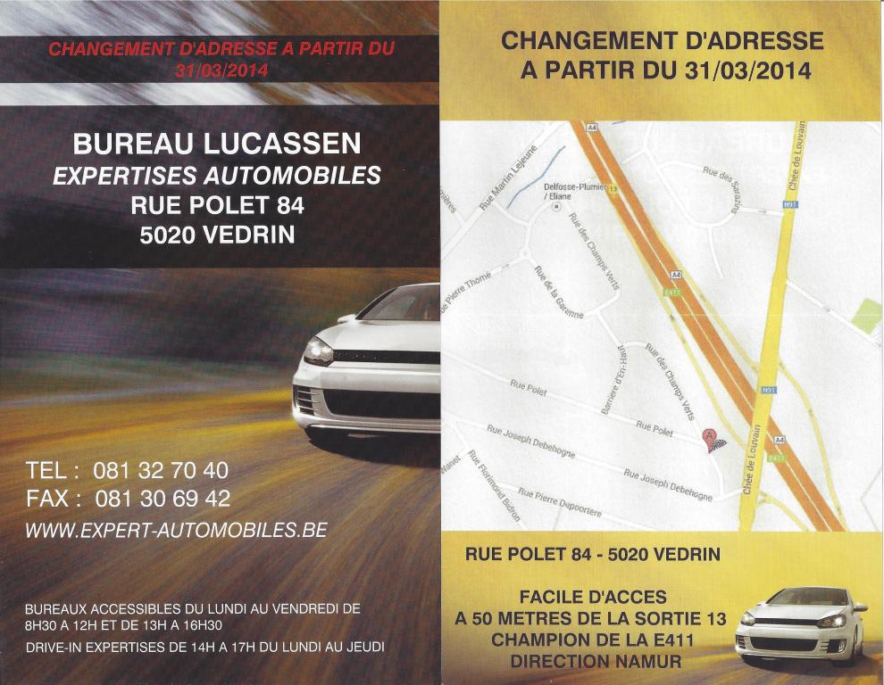 Installé à Vedrin, près de Namur, le bureau d'Expertises Lucassen est votre professionnel dans le domaine de l'automobile.